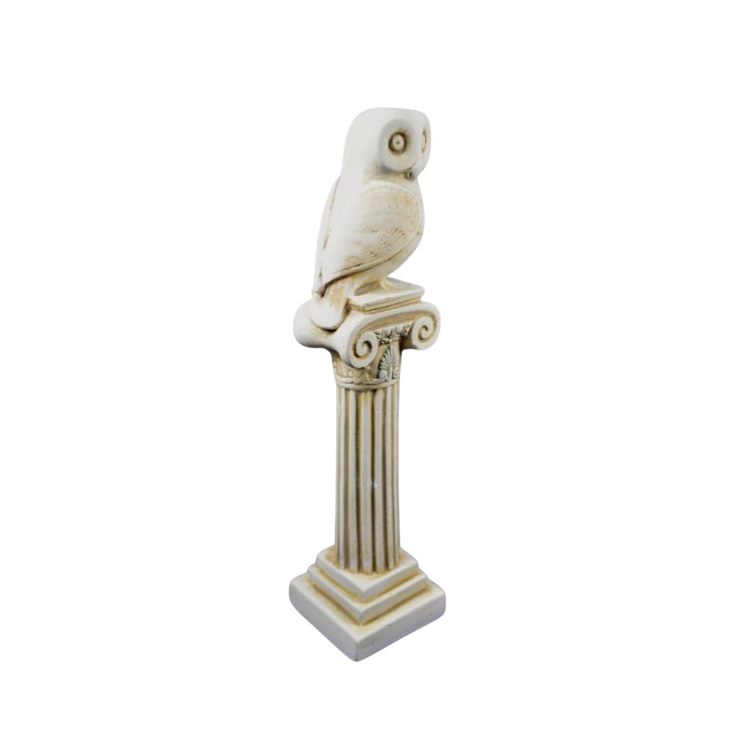 Élégante sculpture représentant la chouette, symbole de la déesse Athéna, incarnation de la sagesse et de l’intelligence dans la mythologie grecque. Inspirée des représentations antiques d’Athènes, cette œuvre allie tradition et finesse artisanale.